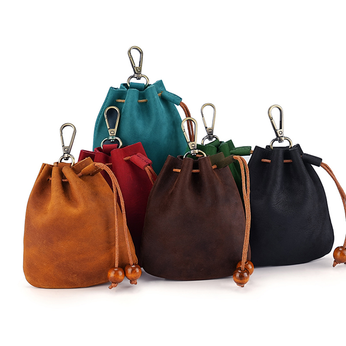 本革の持つ高級感と巾着デザインの親しみやすさが絶妙に融合した逸品となっています。