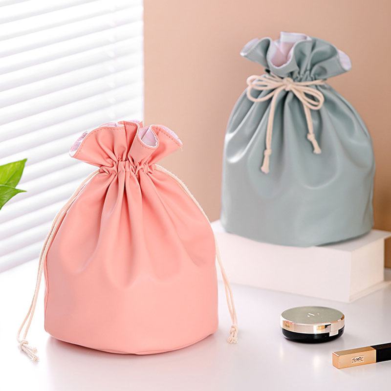巾着タイプなので開け閉めも簡単で、化粧品やアクセサリーなどの収納に最適です。