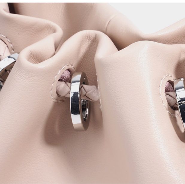 口元は金具付きの紐で開閉でき、中身をしっかり保護します。