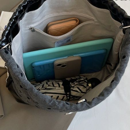 口元は紐で開閉でき、巾着ならではの柔らかなシルエットが魅力的です。