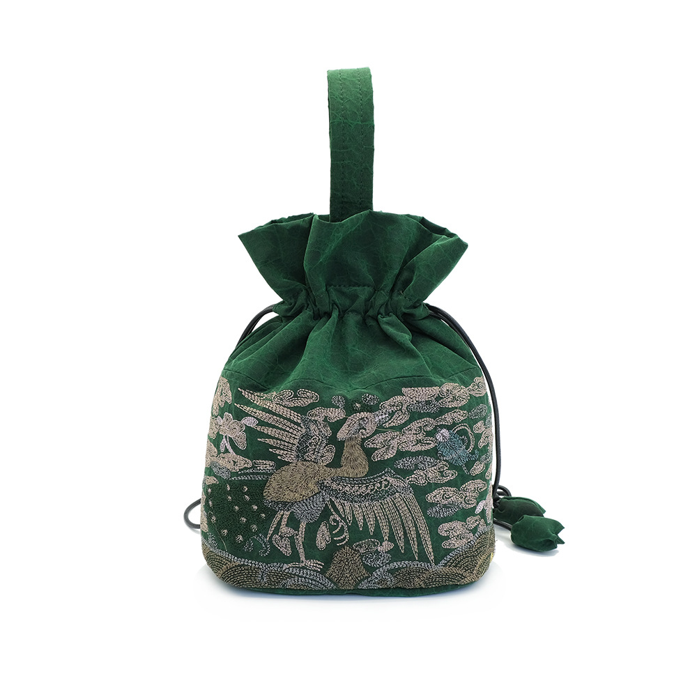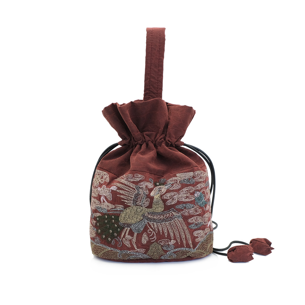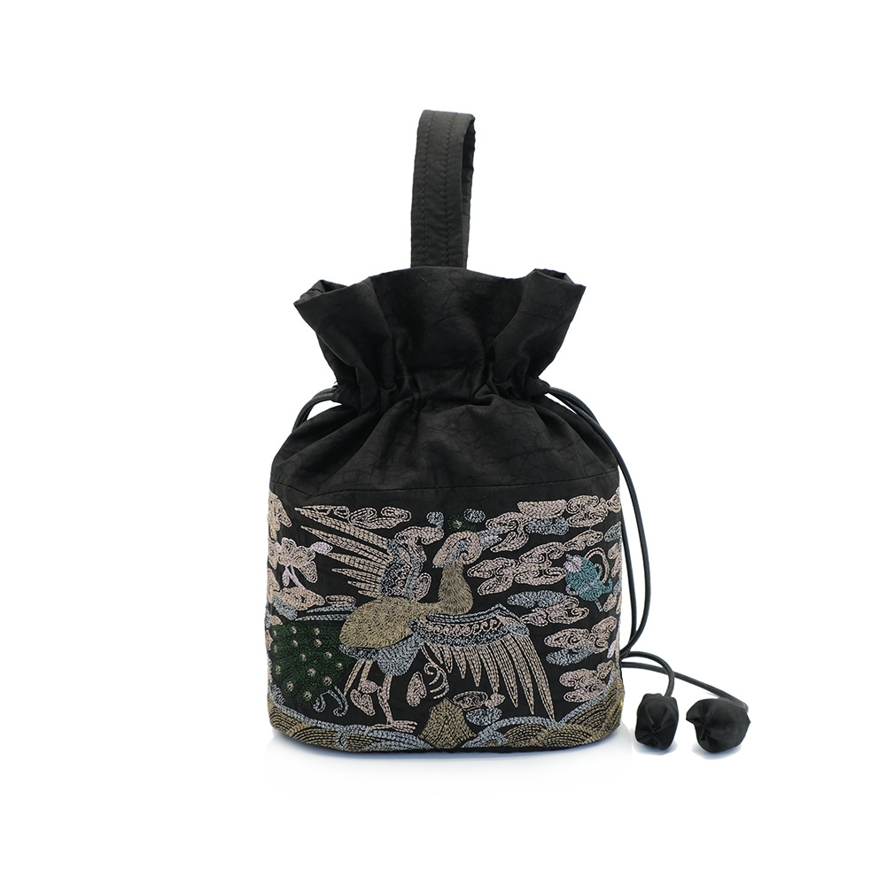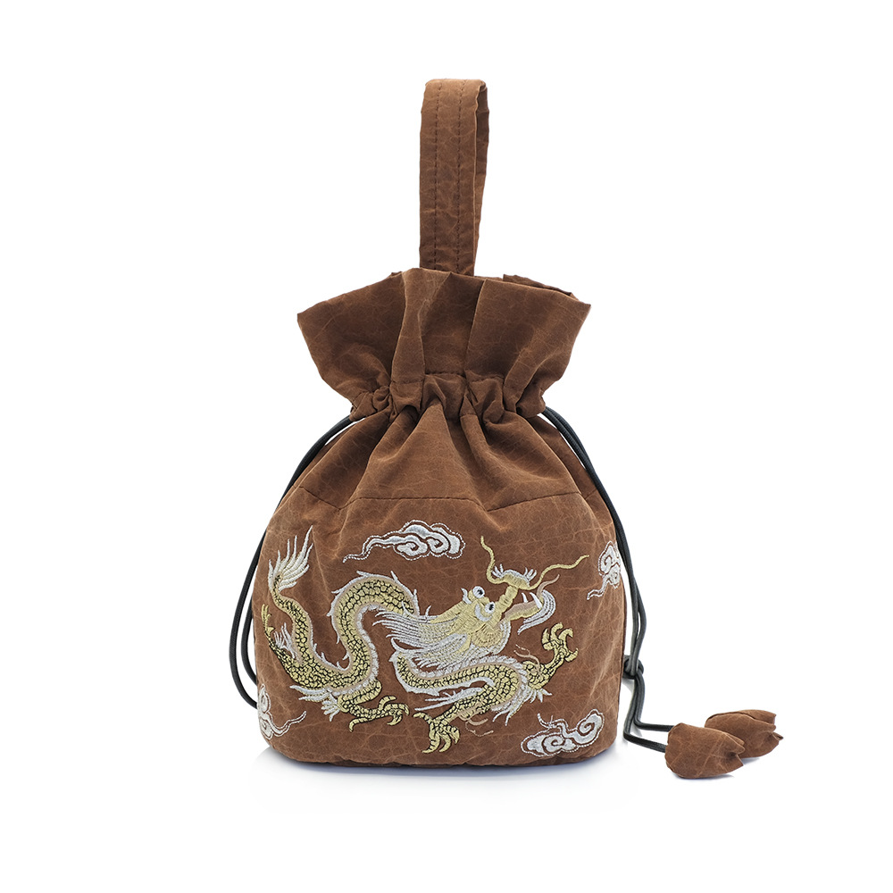 豪華な龍の刺繍が施された、東洋の美を感じる巾着ポーチです。