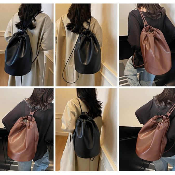 柔らかな合成皮革素材を使用した、大人の雰囲気漂う巾着リュックです。