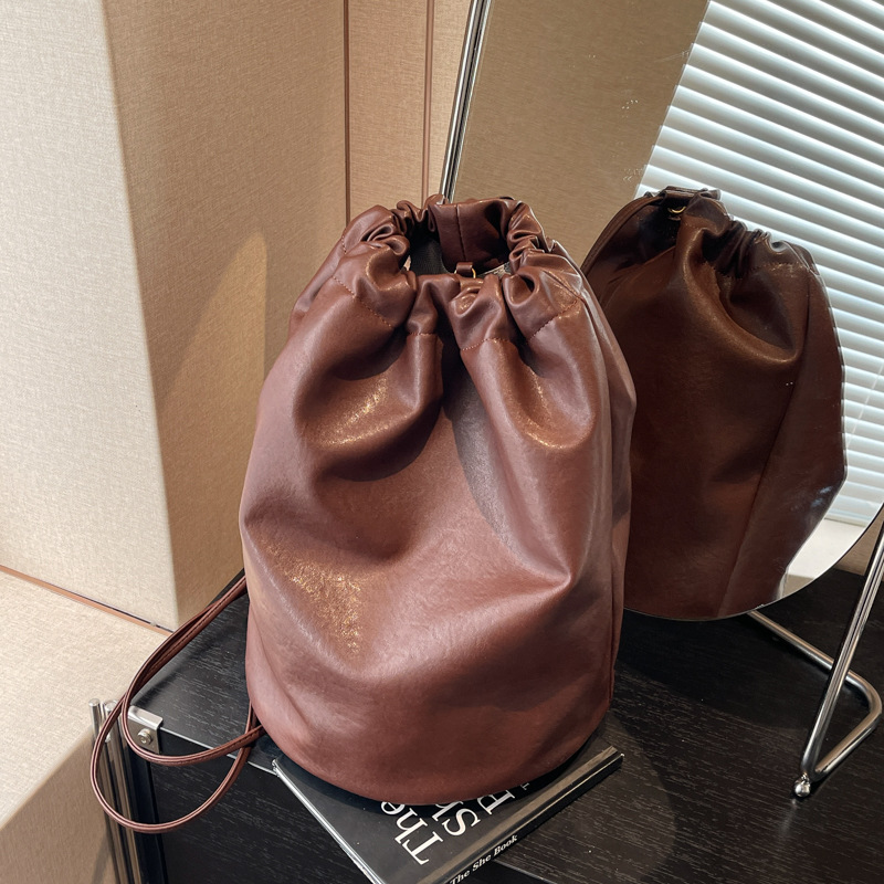 柔らかな合成皮革素材を使用した、大人の雰囲気漂う巾着リュックです。 開口部は紐で絞るタイプの巾着仕様で、荷物の出し入れがスムーズに行えます。 たっぷりとした容量で、普段使いから通勤、お出かけまで幅広く活躍するリュックサックです。 調節可能な肩紐で、体型に合わせて快適に背負えます。 シンプルで洗練されたデザインは、様々なコーディネートに合わせやすく、長くご愛用いただけます。