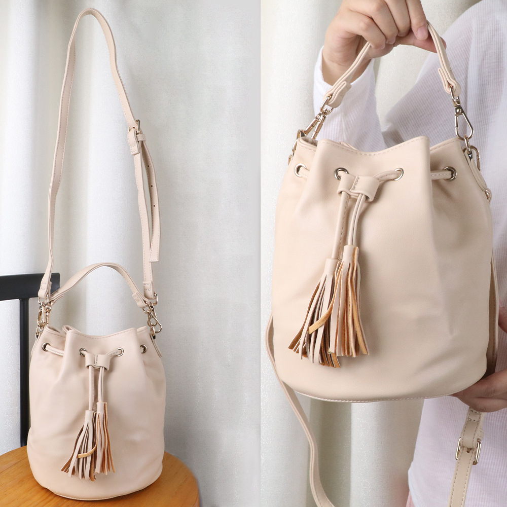 正面には存在感のあるタッセルが揺れ、歩くたびに女性らしさを引き立てます。