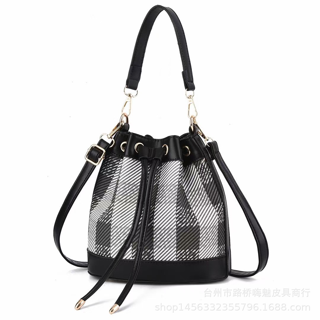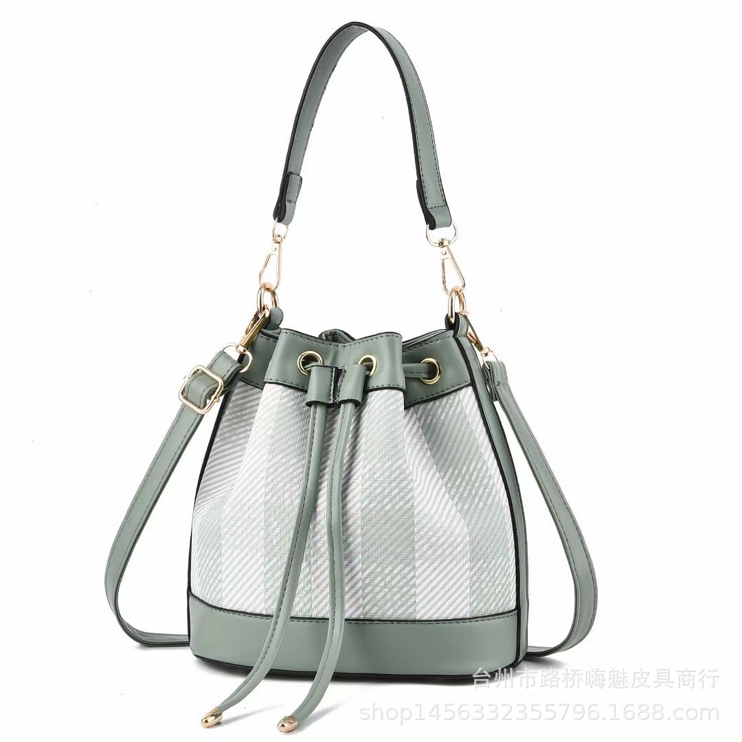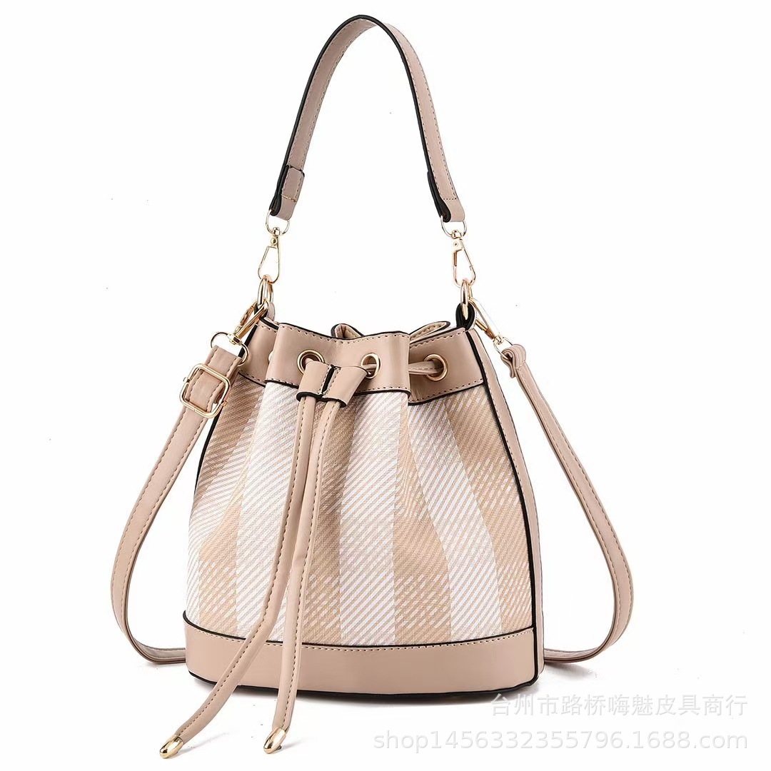 クラシカルなチェック柄と上質な合成皮革を組み合わせた巾着デザインのショルダーバッグです。 開閉は巾着仕様で荷物の出し入れがスムーズに行え、調節可能なショルダーストラップで肩掛けや斜め掛けとして使用できます。 金具のアクセントが高級感を演出し、デイリー使いからお出かけまで幅広いシーンで活躍します。 コンパクトながらも必要な荷物がしっかり収まる実用性の高いアイテムです。