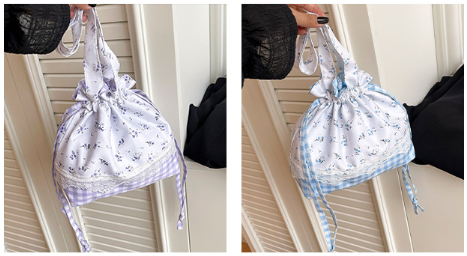 可愛らしい小花柄とギンガムチェック柄を組み合わせた巾着タイプのポーチです。