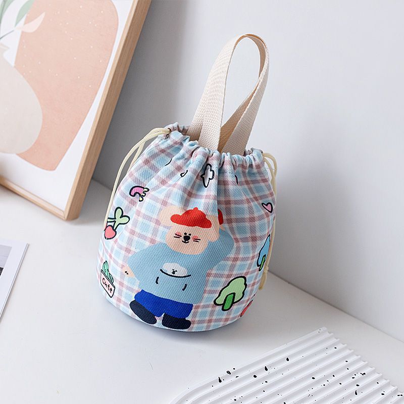 開閉は紐で絞るだけの簡単仕様で、中身の出し入れもスムーズに行えます。