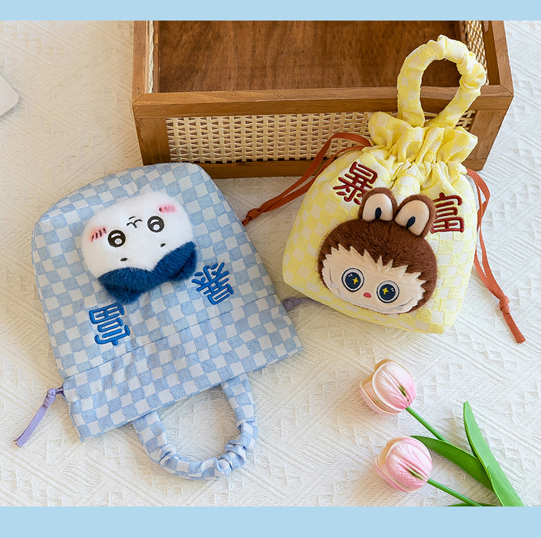 キュートな動物やキャラクターの刺繍が魅力的な巾着タイプのポーチです。
