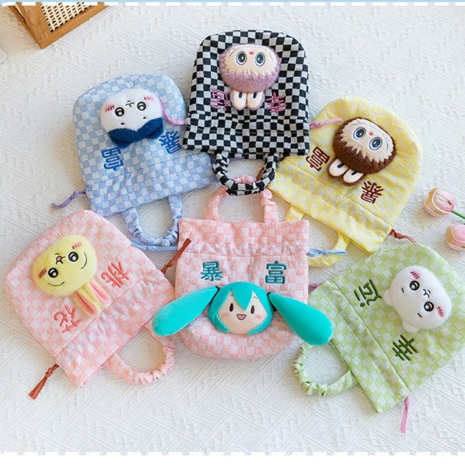 ふんわりとした柔らかな生地にチェック柄やギンガムチェック風のデザインを施し、ころんとした丸みのあるフォルムが愛らしい仕上がりになっています。