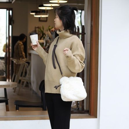 柔らかなエコファー素材が特徴の巾着型ポーチです。 上品な風合いのファーが全面を包み込み、触り心地も抜群の仕上がりとなっています。 巾着紐で開閉も簡単で、長さ調節可能なショルダーストラップ付きで肩掛けや斜め掛けにも対応します。 コンパクトながらも必需品がしっかり収納でき、お出かけやデートなど様々なシーンで活躍するポーチです。 高級感のある見た目で、秋冬のコーディネートに華やかさを添えてくれます。