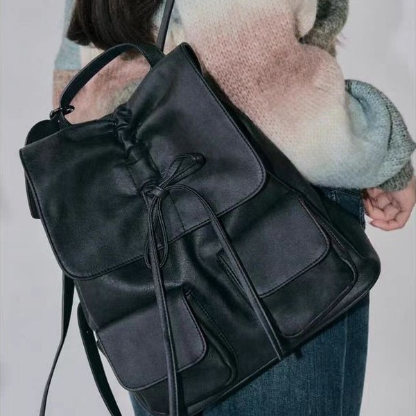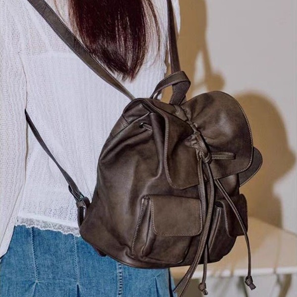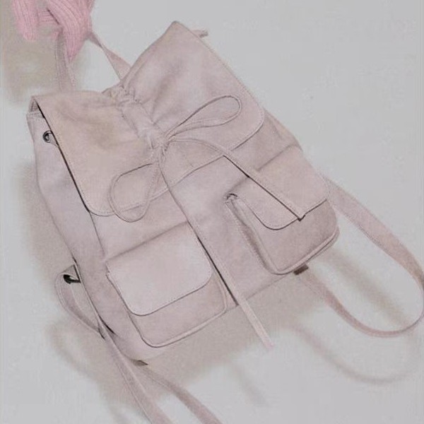 やわらかな質感が魅力的な巾着タイプのリュックです。