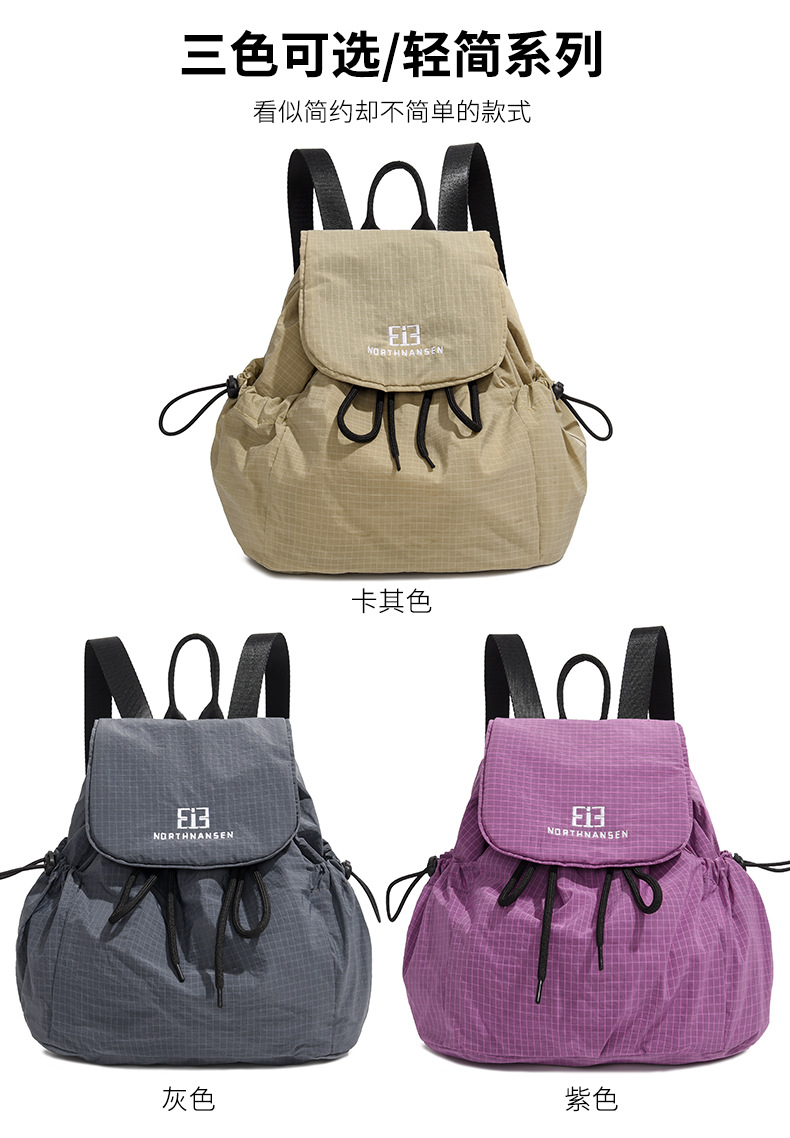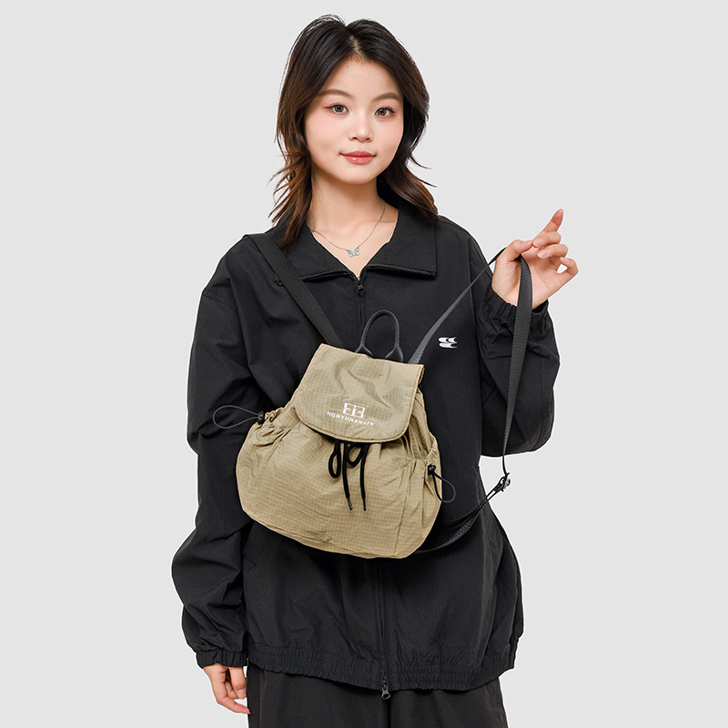 柔らかなナイロン素材で作られた軽量タイプの巾着リュックです。
