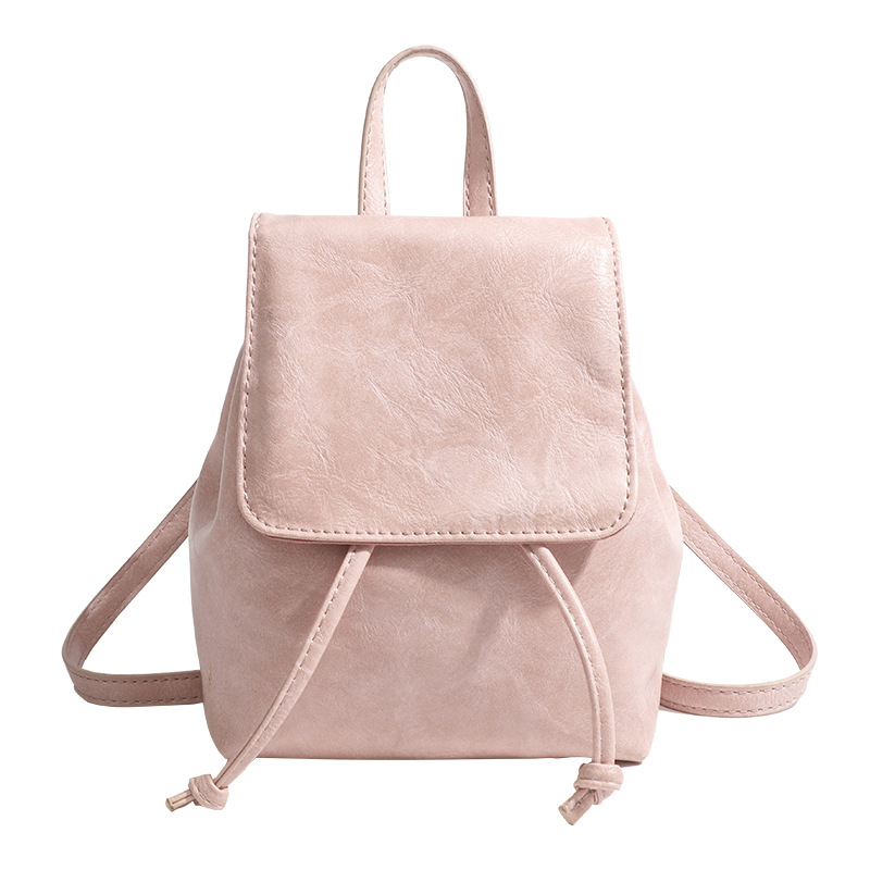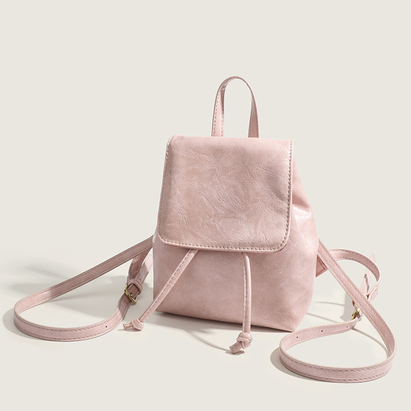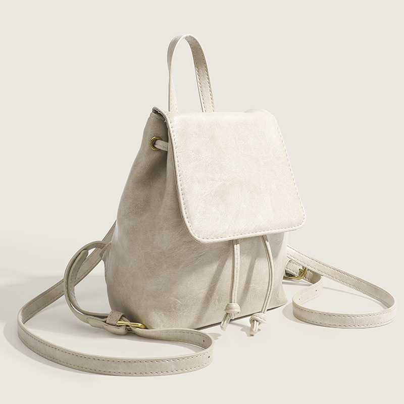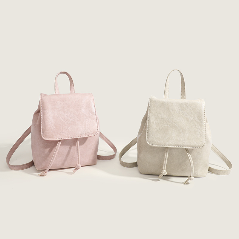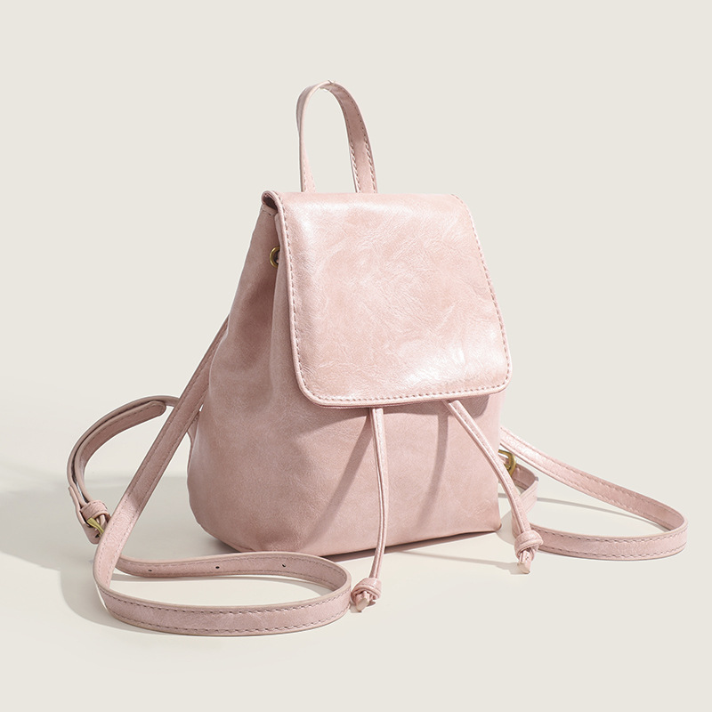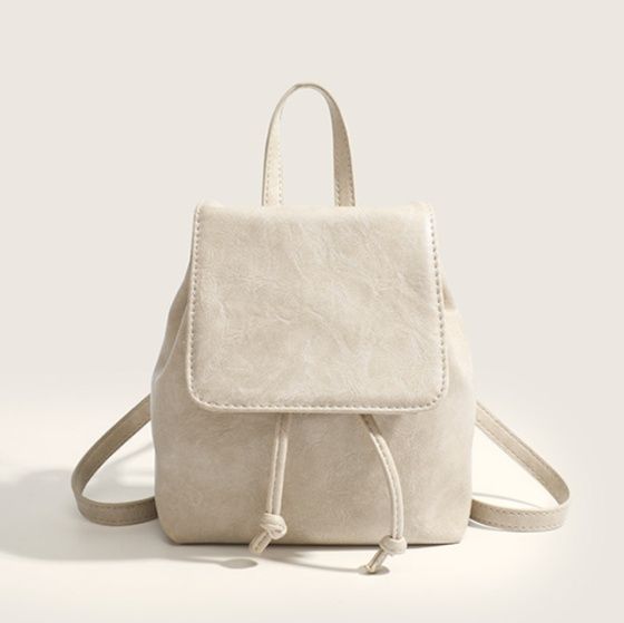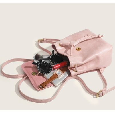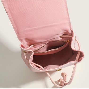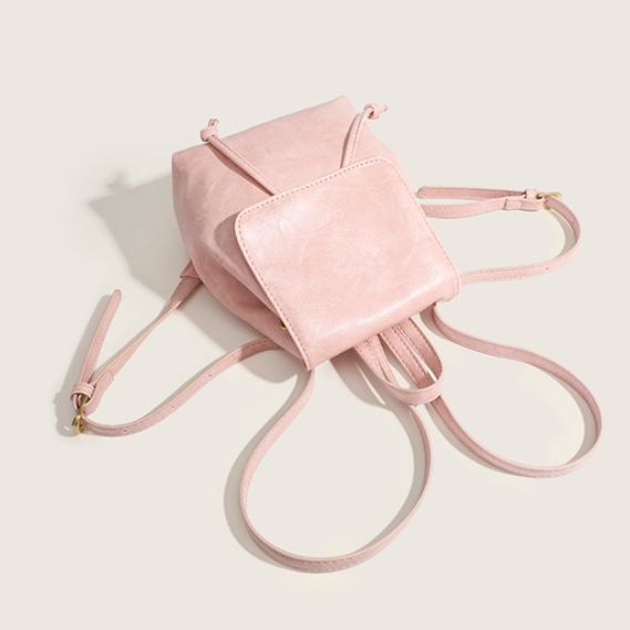 柔らかな合成皮革素材を使用した、女性らしい雰囲気が魅力の巾着リュックです。
