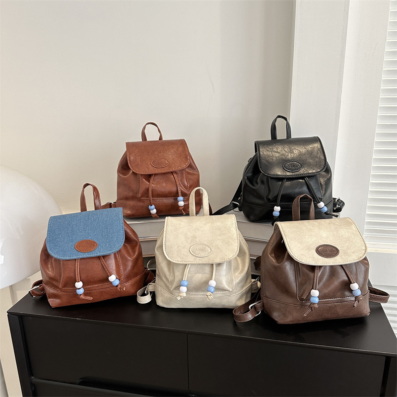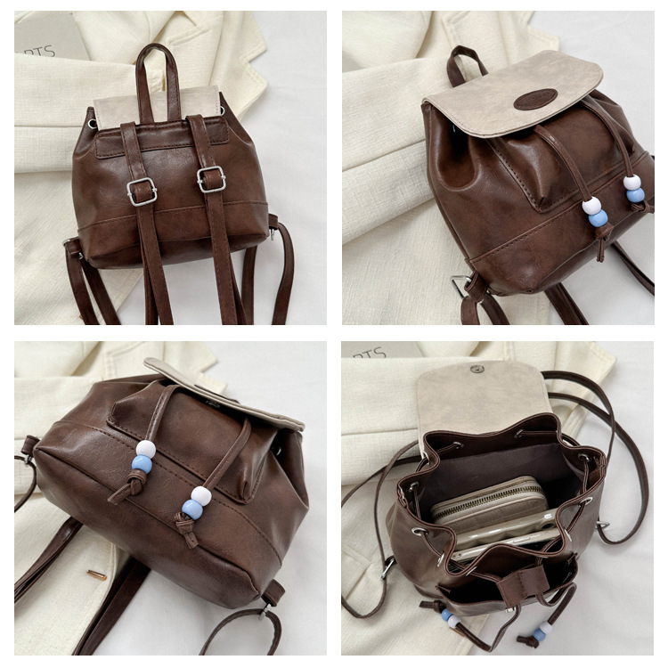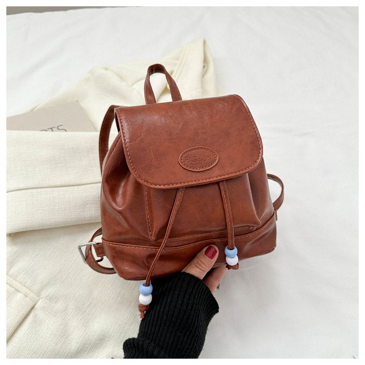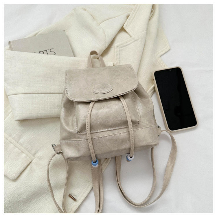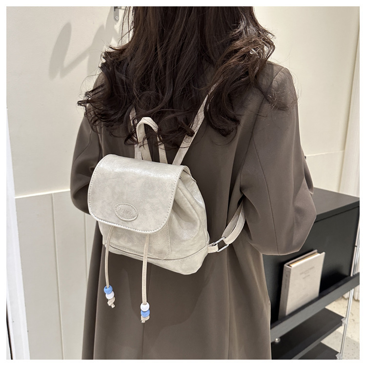 コンパクトなサイズ感で普段使いにぴったりで、紐先のビーズ飾りがさりげないアクセントになっています。