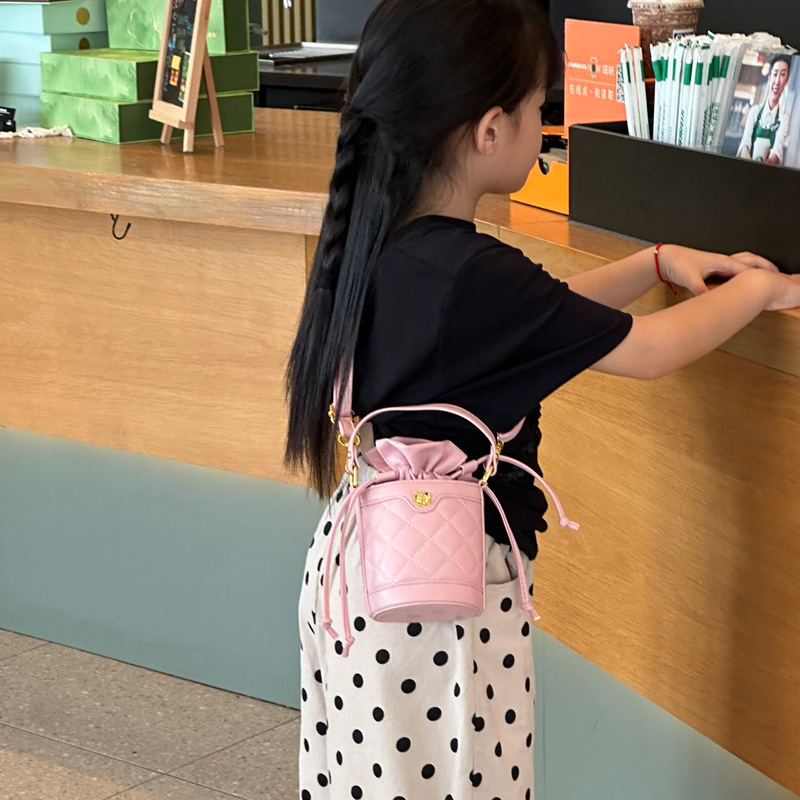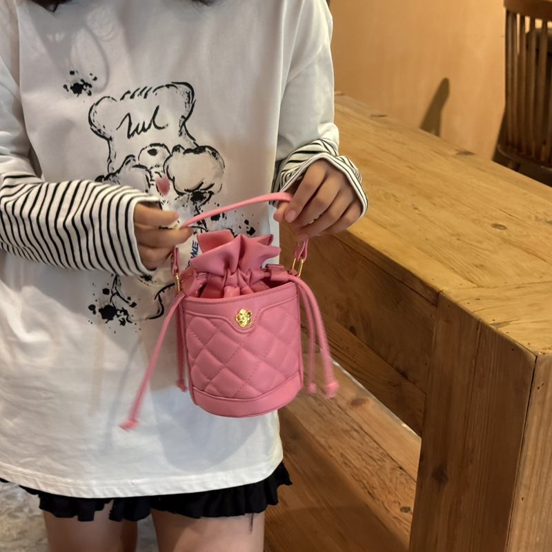 上品なキルティング調のステッチが魅力的なバケツ型の巾着ポーチです。