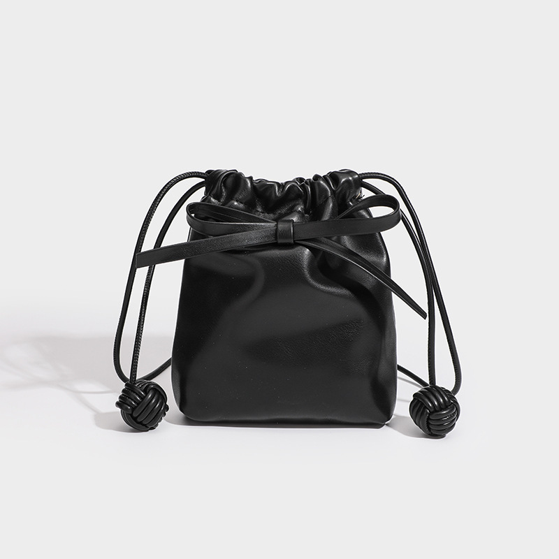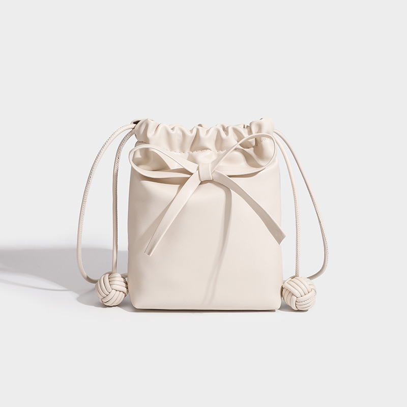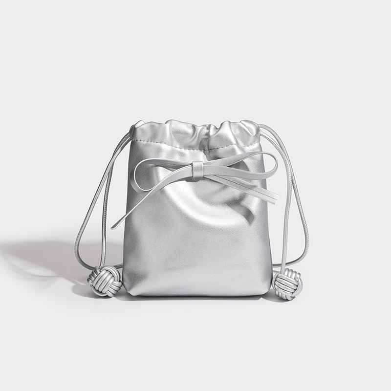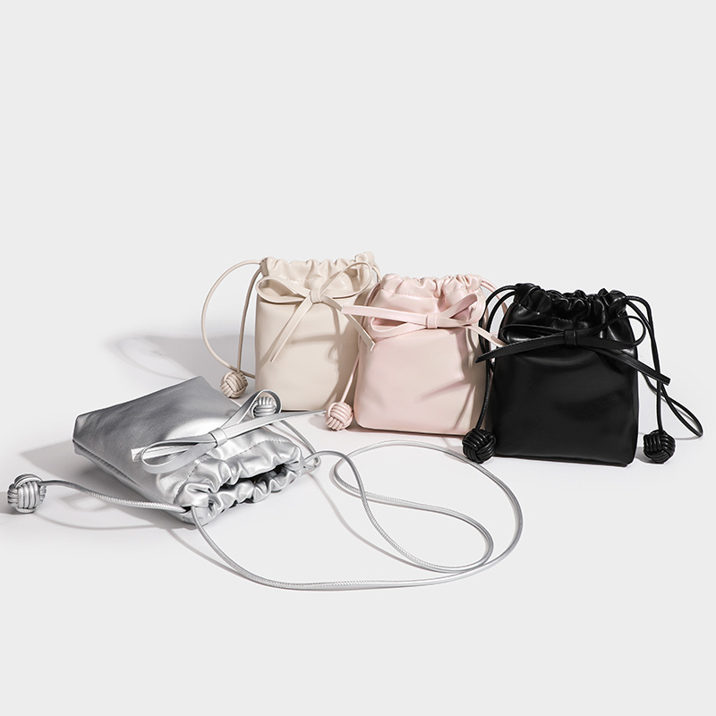 上品なリボンがアクセントの巾着タイプのショルダーバッグです。