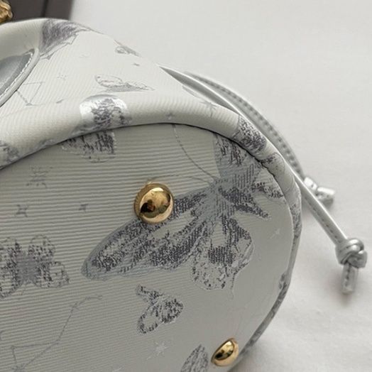 巾着の口元には上品なフリルがあしらわれ、フェミニンな印象を演出します。