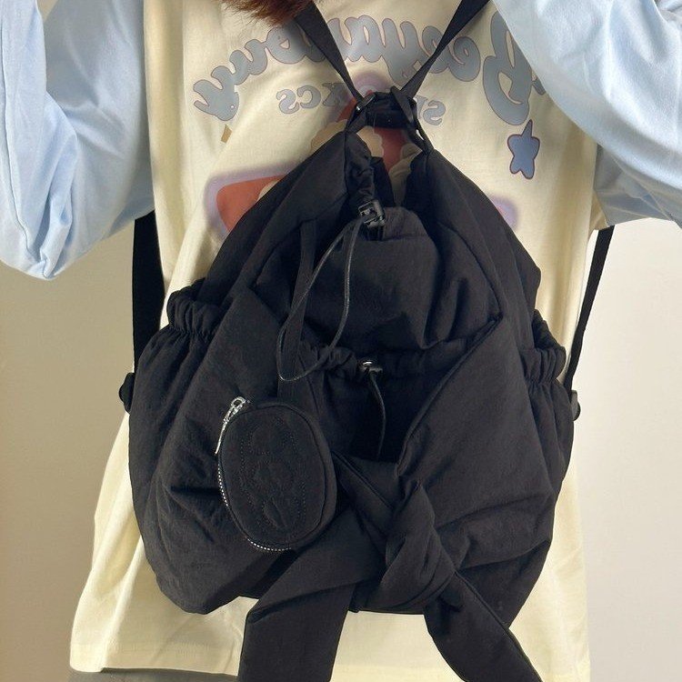 軽量で使いやすい巾着タイプのリュックです。 開閉が簡単な巾着仕様で荷物の出し入れもスムーズに行えます。 フロントには便利な小物ポケットとファスナー付きポケットが配置されており、スマートフォンや鍵などの貴重品をすぐに取り出せます。 サイドにも収納ポケットが付いているので機能性も抜群です。 調節可能な肩紐で自分にぴったりのフィット感が得られ、通学や通勤、普段使いにも最適なリュックです。