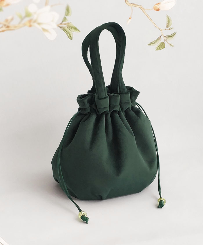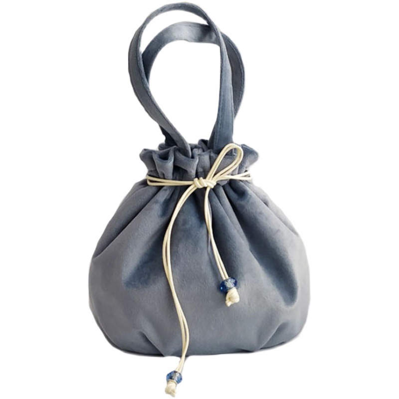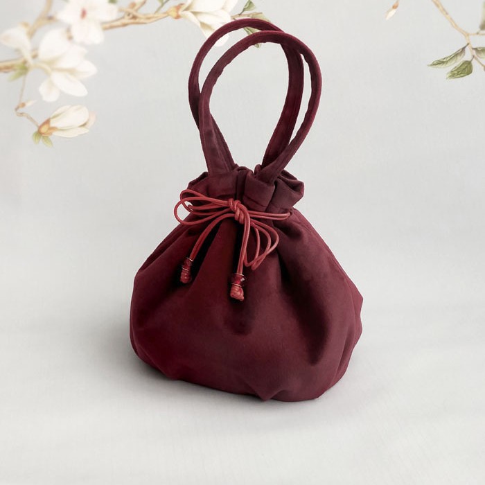 柔らかな素材が優しい印象を与える巾着型のポーチです。 丸みを帯びたフォルムと絞りのリボンが可愛らしく、持ち手付きで持ち運びにも便利です。 コンパクトなサイズ感ながら必需品をしっかり収納でき、ちょっとしたお出かけやパーティーシーンにも最適です。 上品なデザインで、様々なコーディネートに合わせやすい巾着ポーチとなっています。
