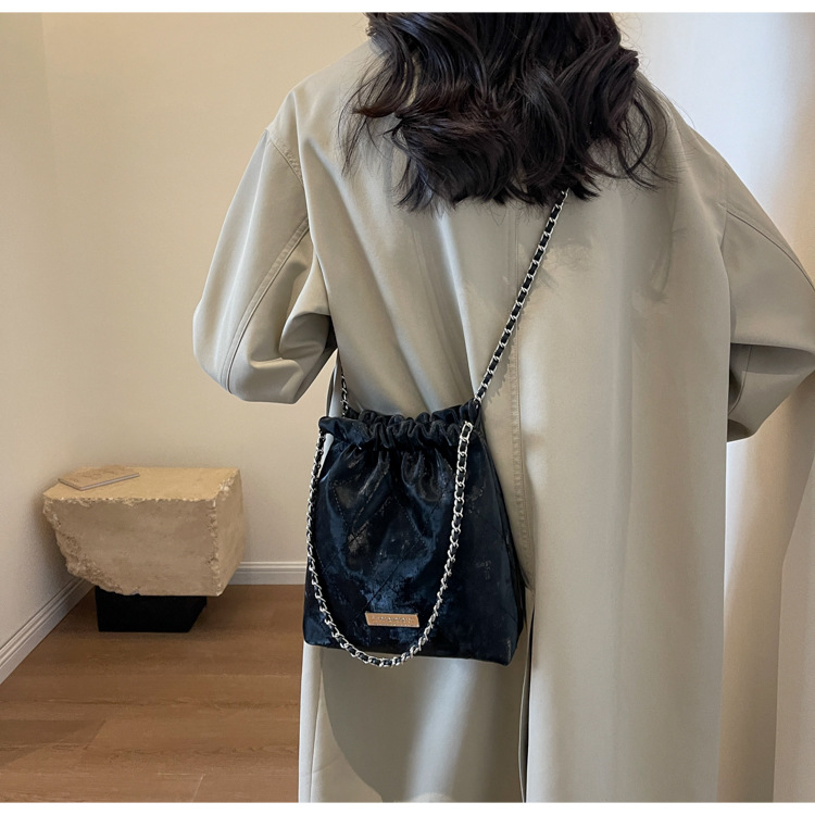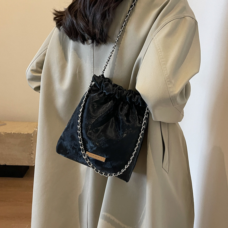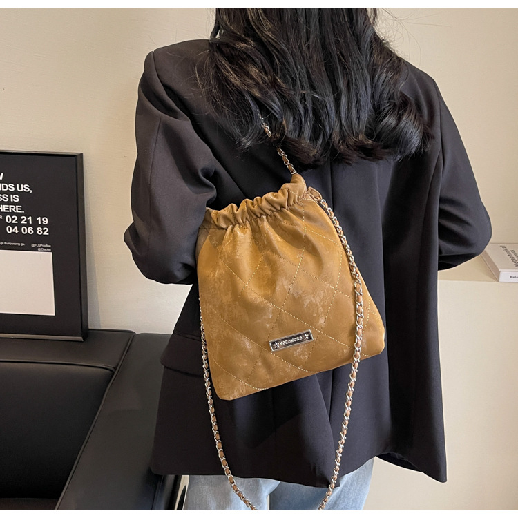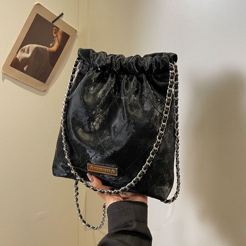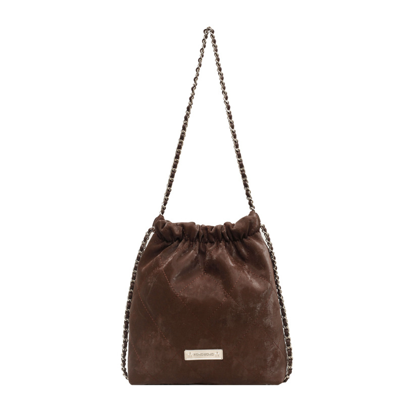 立体的なキルティングステッチが施された上品な巾着タイプのショルダーバッグです。