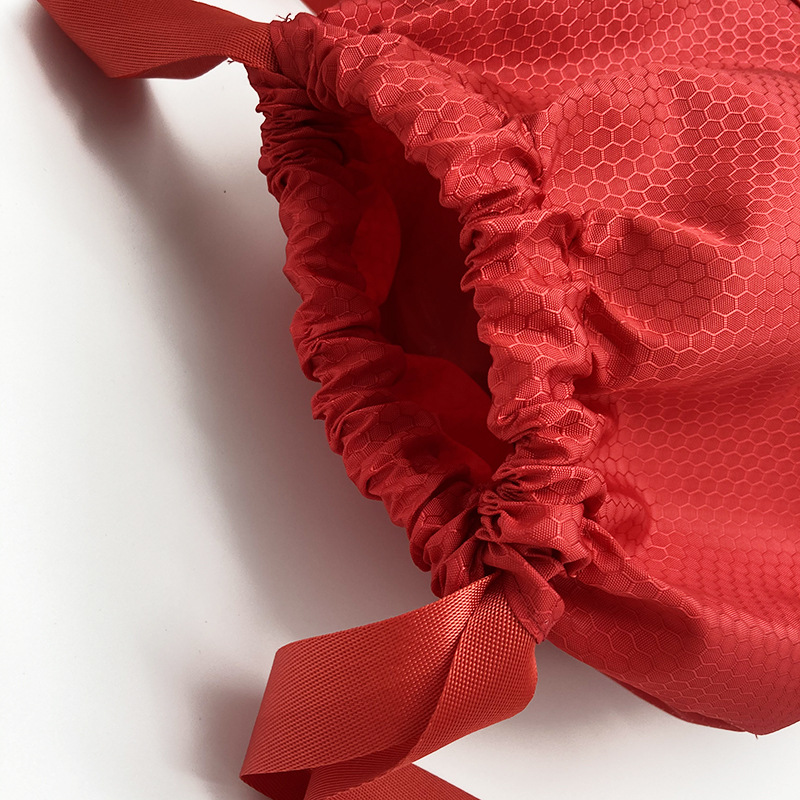 表面に蜂の巣のような立体的な六角形模様が施された軽量タイプの巾着リュックです。