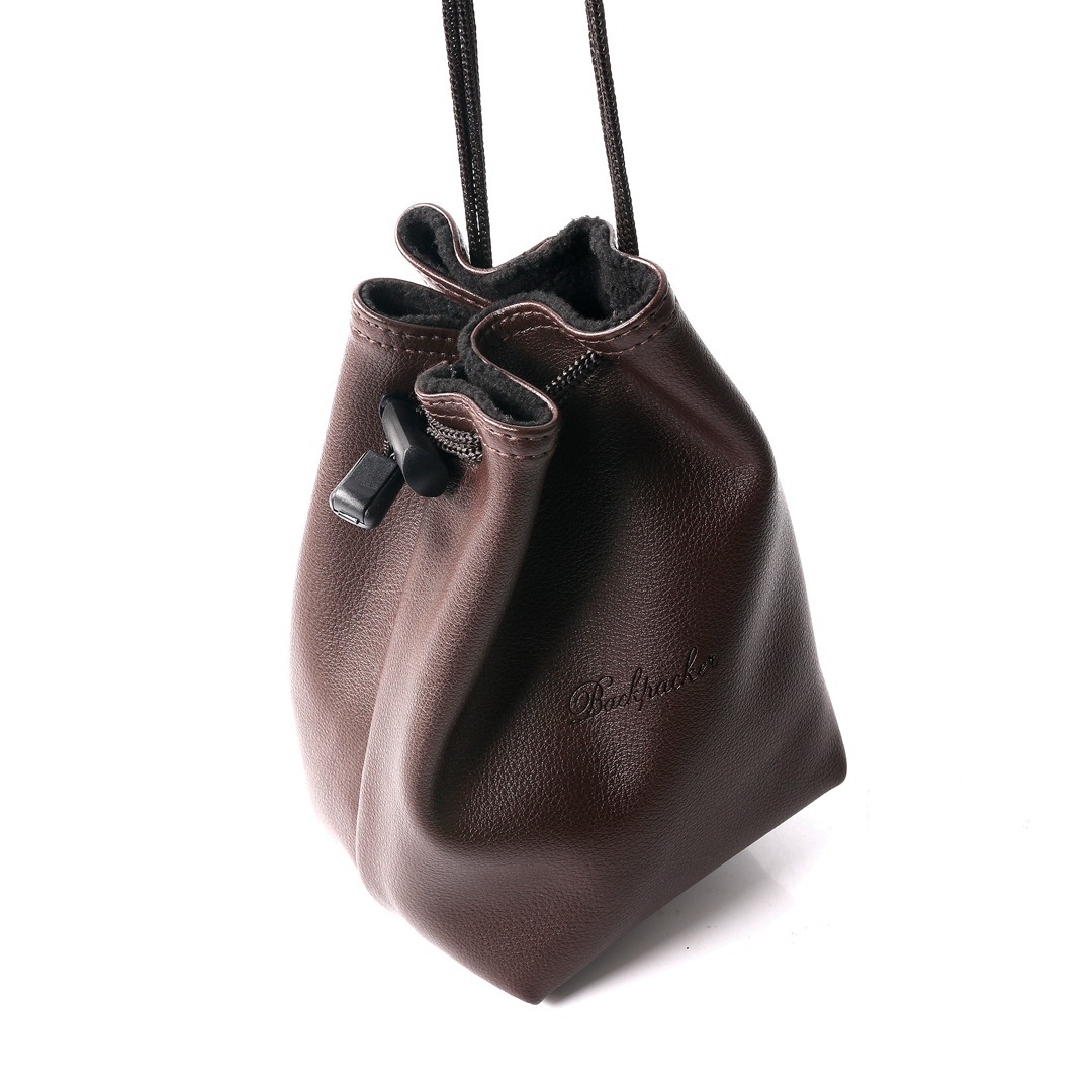 上質な本革を使用した高級感あふれる巾着タイプのポーチです。