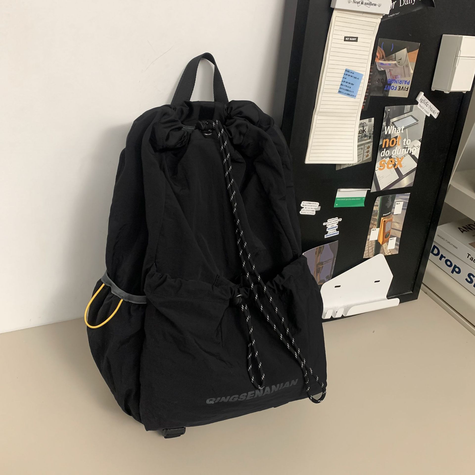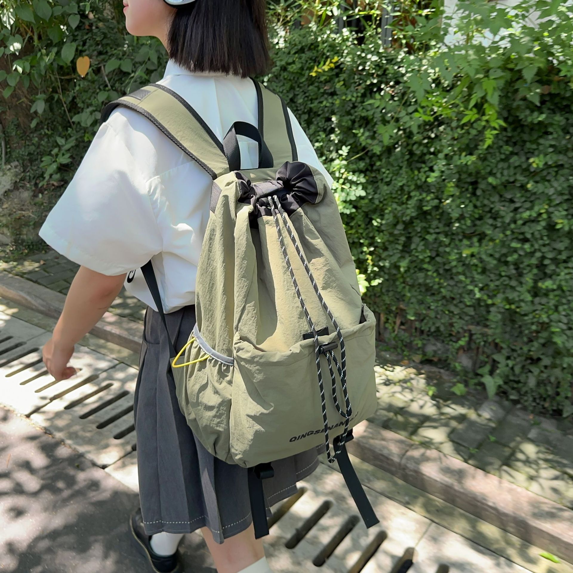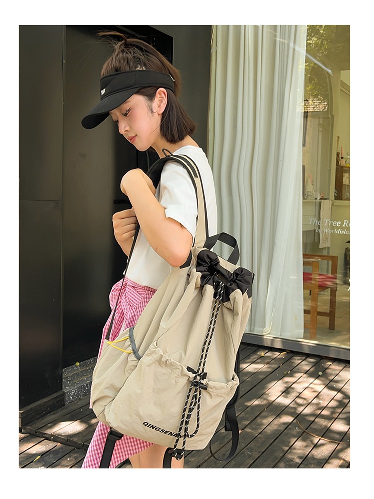巾着デザインで開閉が簡単ながらも荷物をしっかり守れる安心感があります。