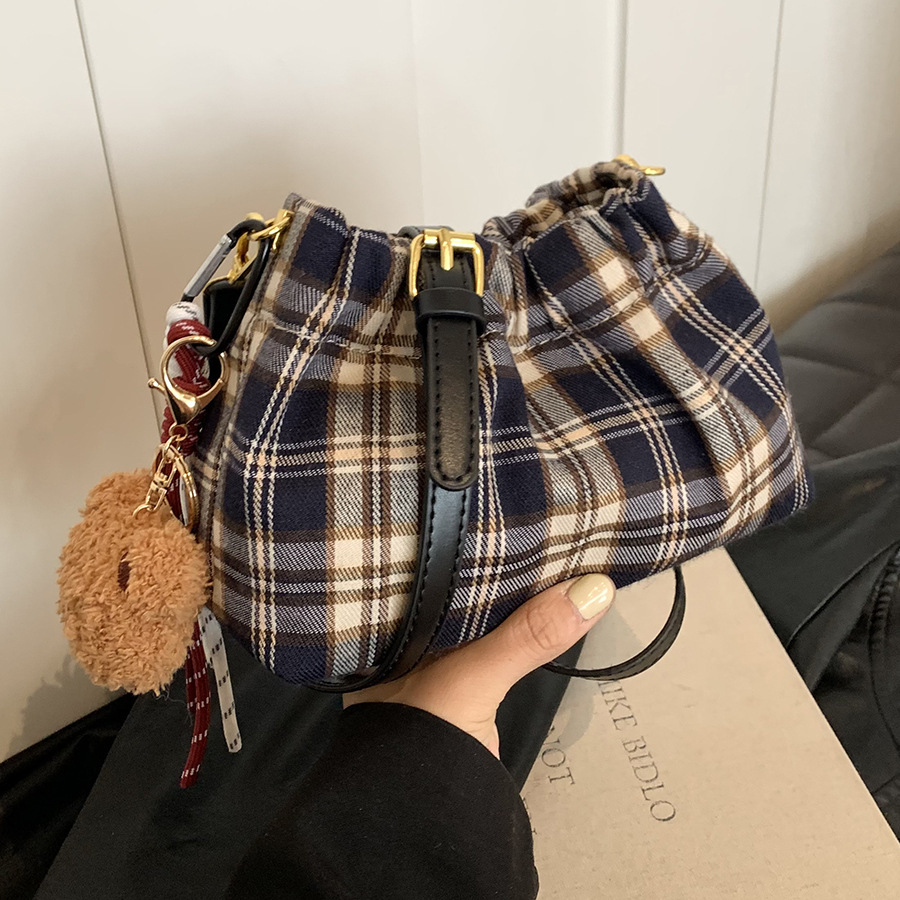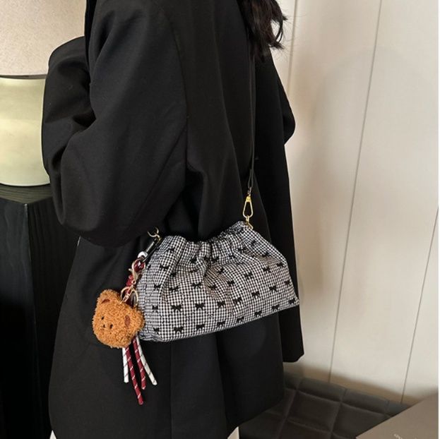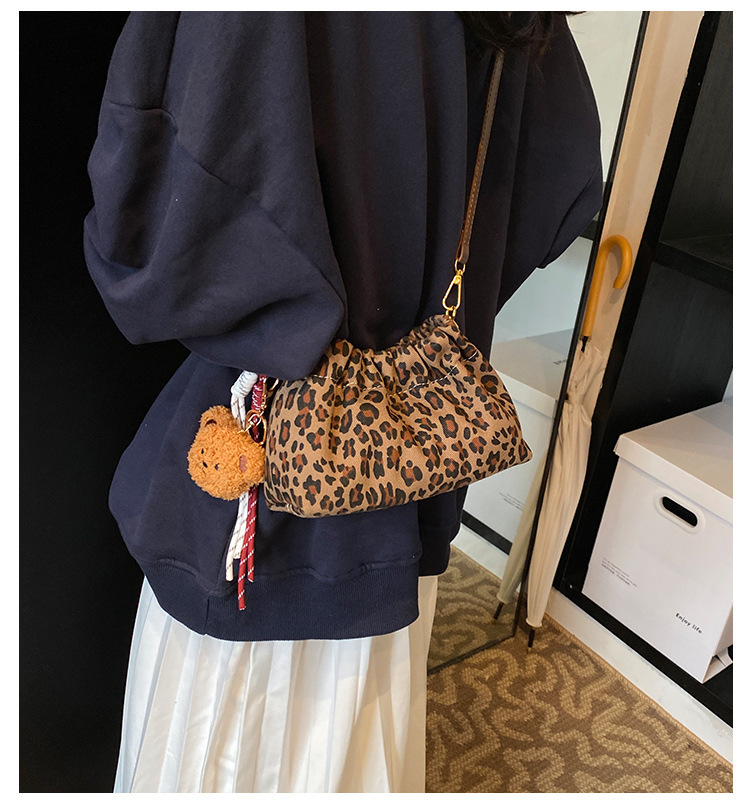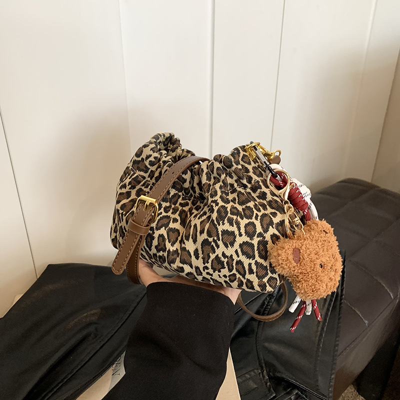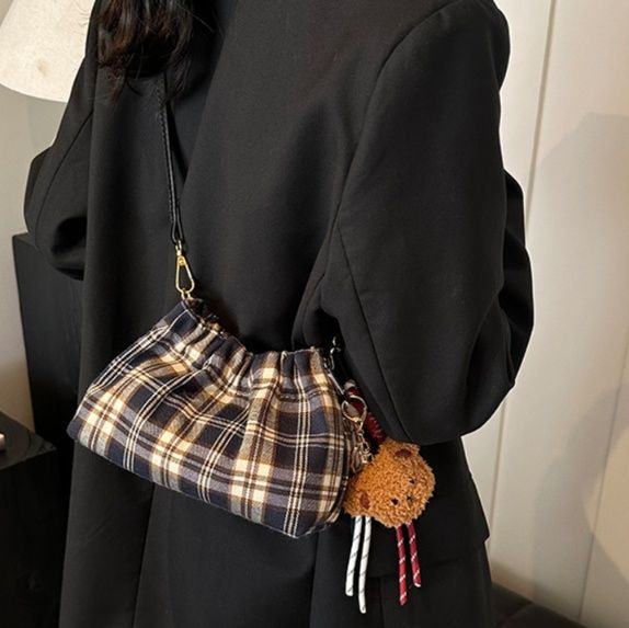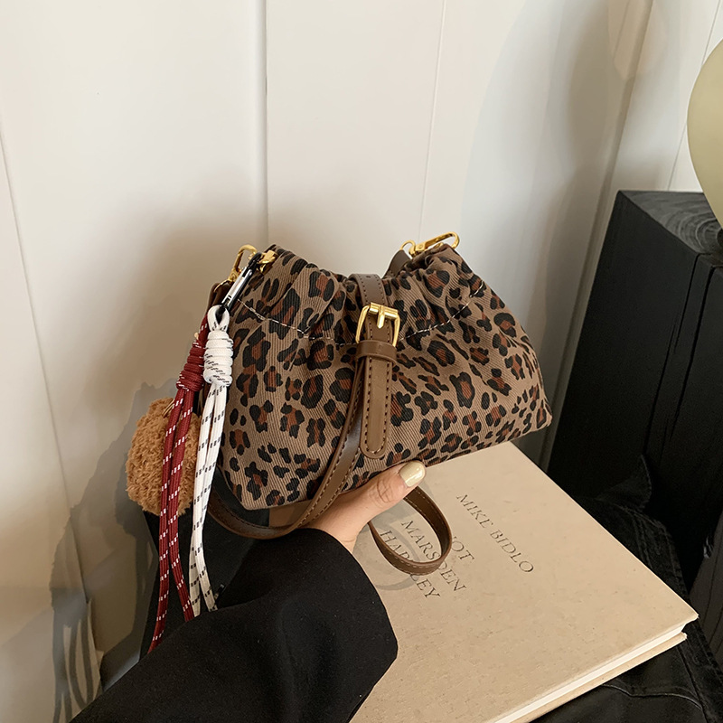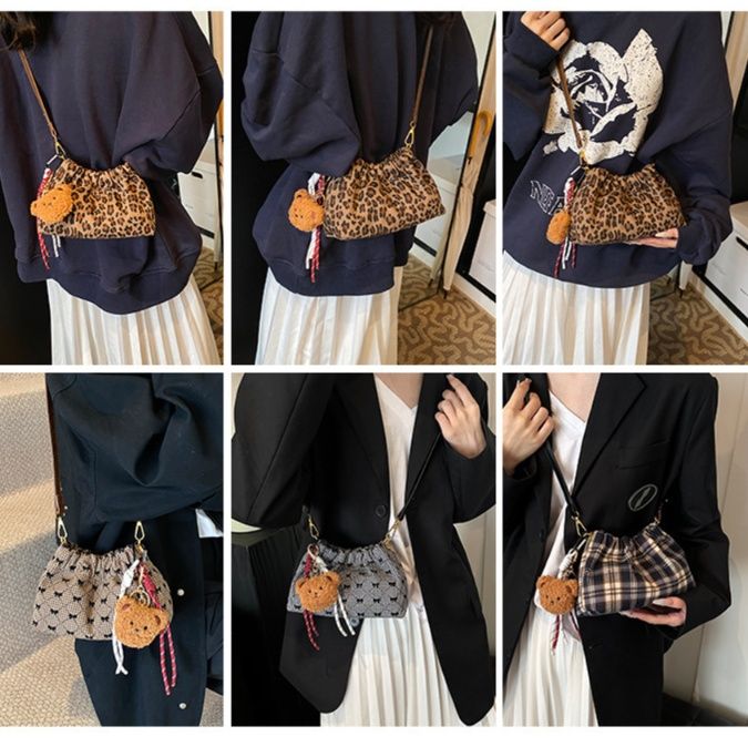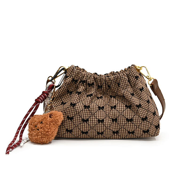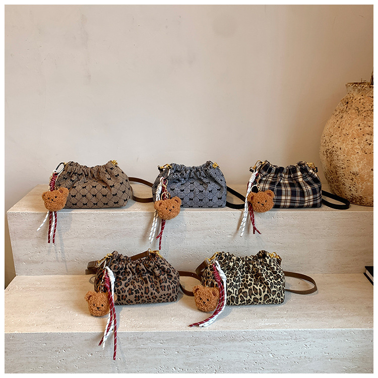 クラシカルな格子柄と華やかなヒョウ柄の2つの柄から選べる巾着タイプのショルダー鞄です。
