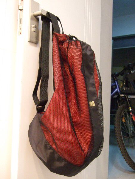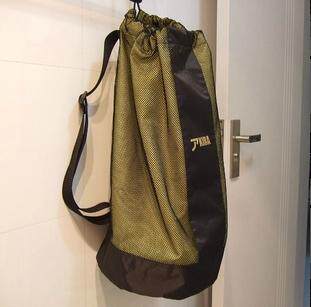 通気性抜群のメッシュ素材と丈夫なナイロン生地を組み合わせた巾着タイプのリュックです。