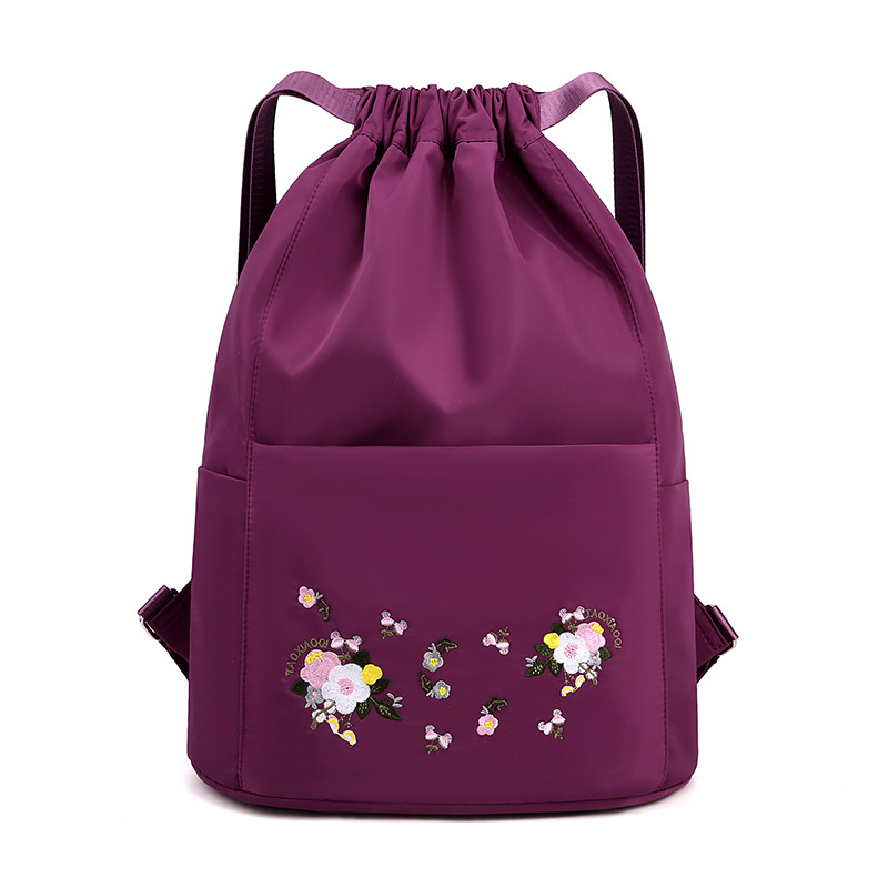 華やかな花柄刺繍が施された巾着デザインのリュックです。 軽量で撥水性のある生地を使用しており、運動や健康、遊泳など多様なシーンで活躍します。 巾着タイプの開閉で出し入れも簡単で、前面には便利なポケット付きです。 休閒や屋外活動にぴったりの収納力と機能性を兼ね備えた実用的なリュックサックです。 日常使いから旅行まで幅広くお使いいただけます。