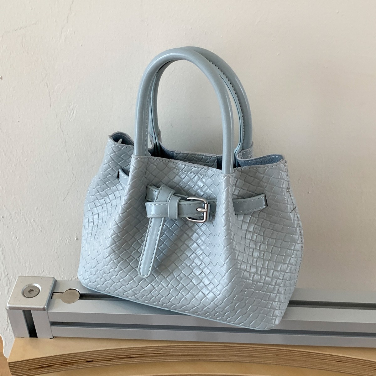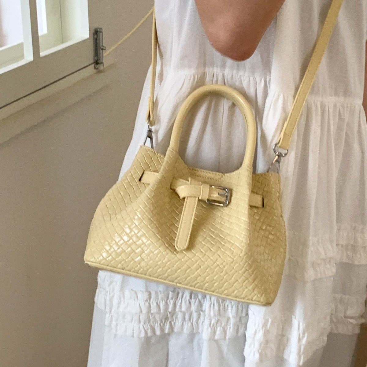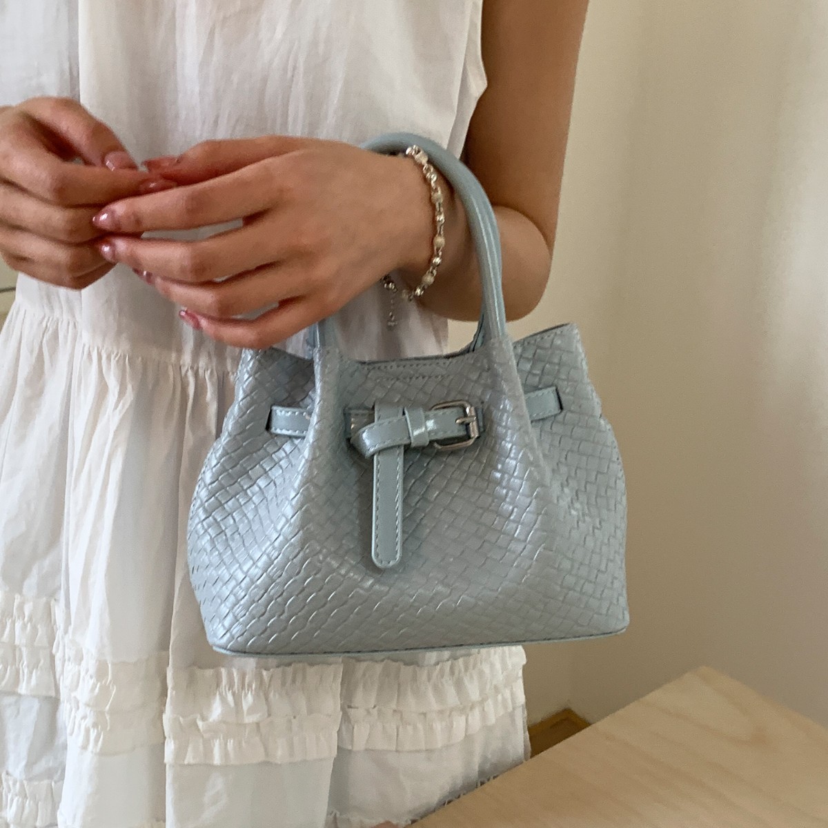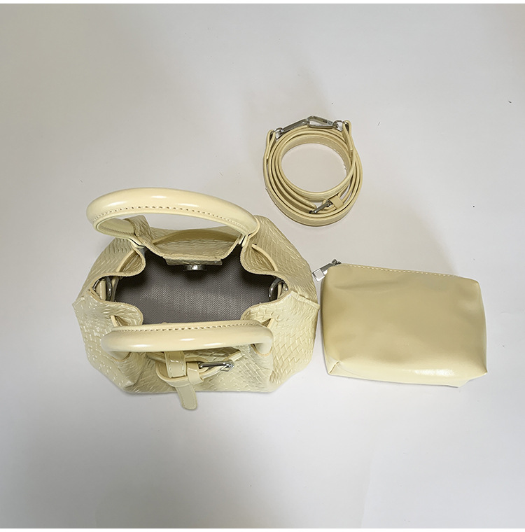 繊細な編み込み模様が美しい巾着タイプのショルダーバッグです。