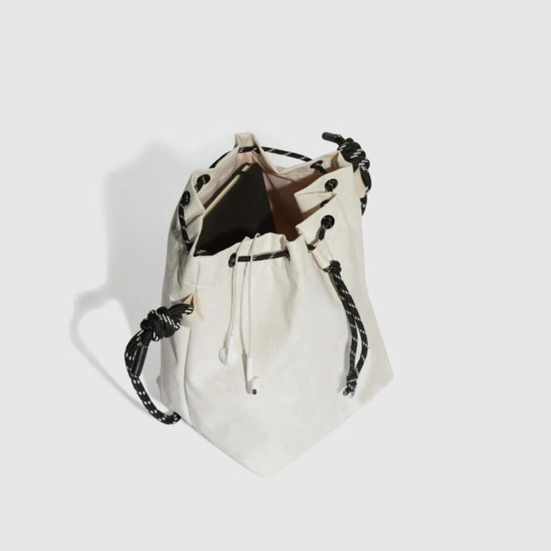開閉部分には編み込みコードを採用し、留め具のアクセントが洗練された印象を与えます。