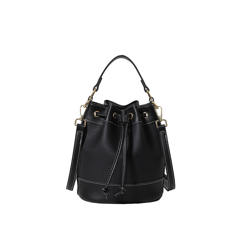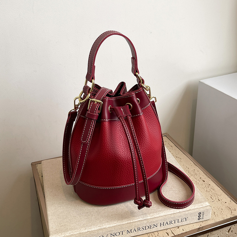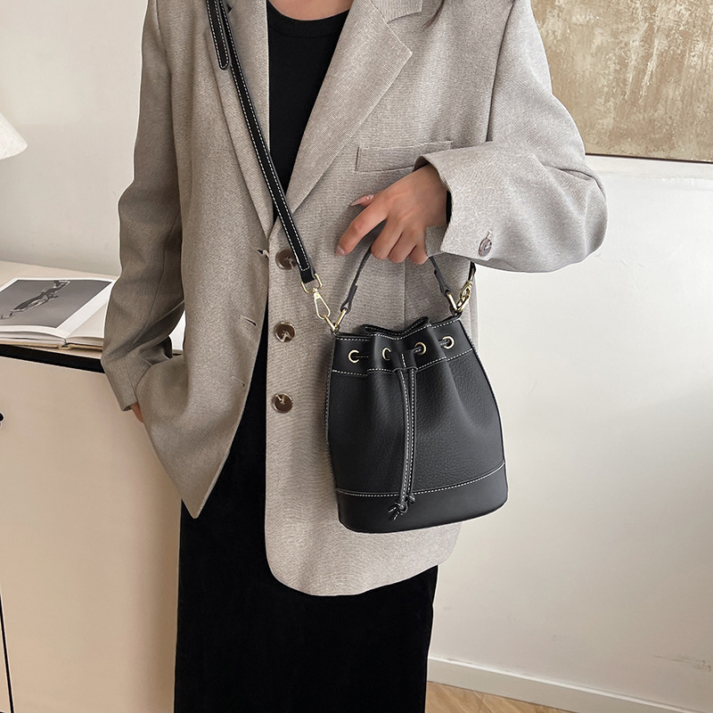 上質なレザー調素材を使用した大人の雰囲気漂う巾着タイプのショルダーバッグです。