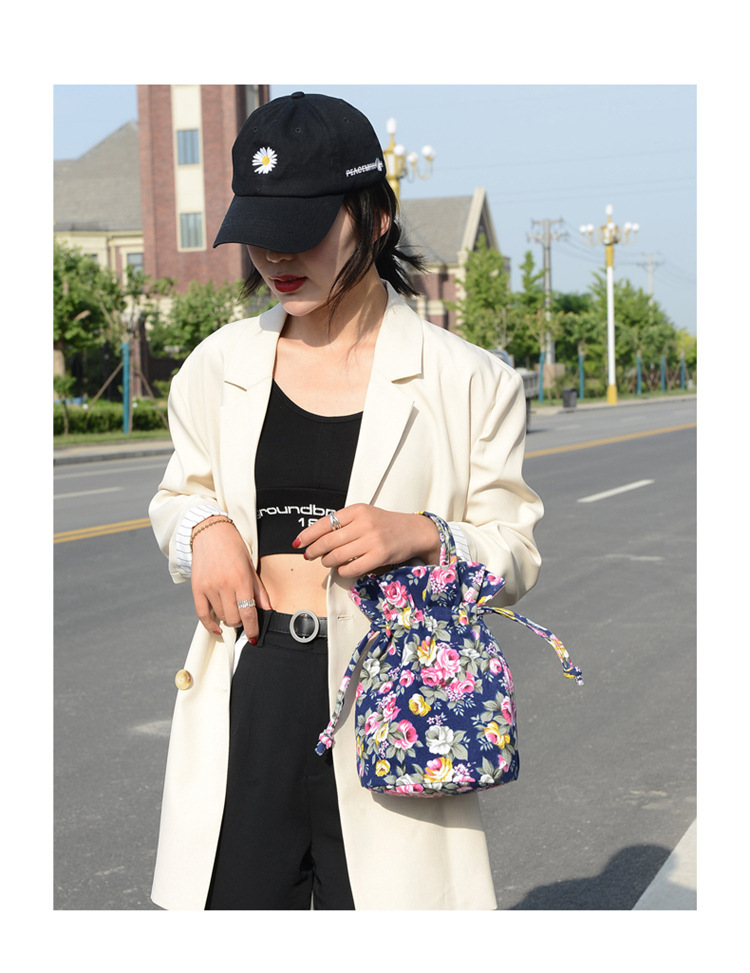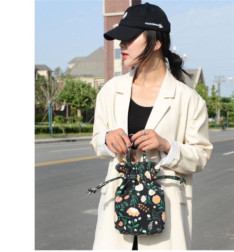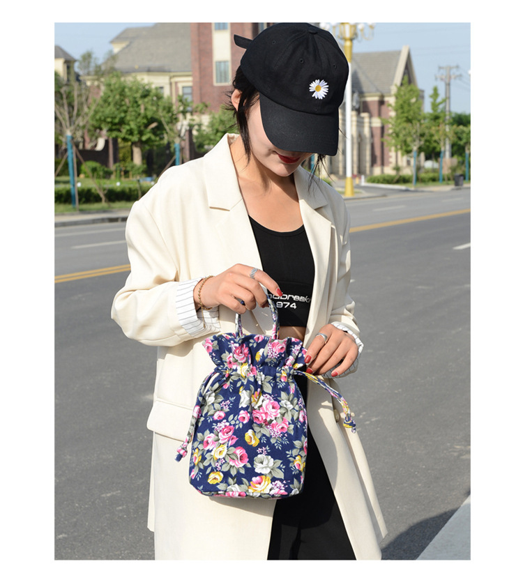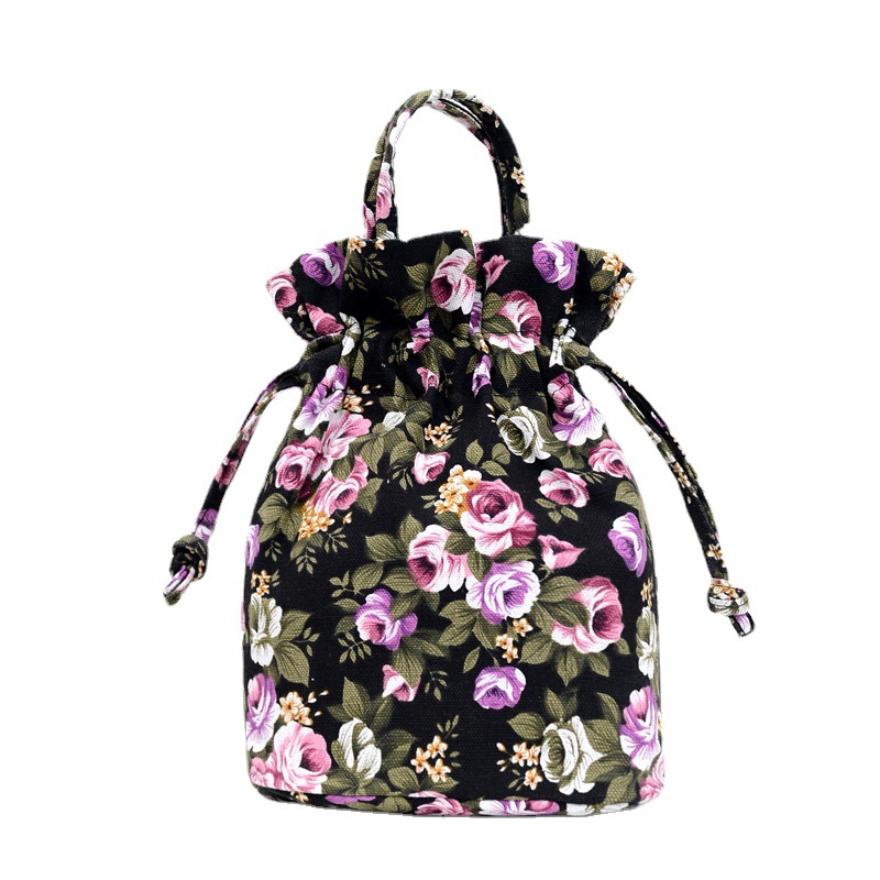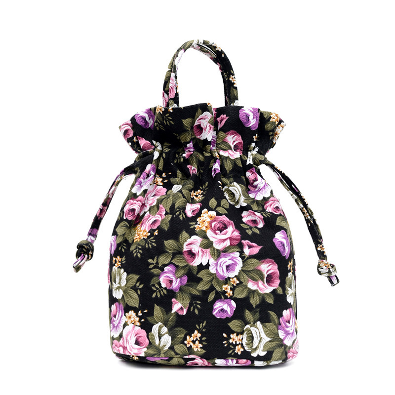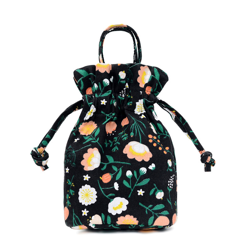 華やかな花柄が魅力的な巾着タイプのポーチです。